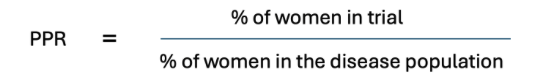 PPR is a metric used in clinical trial analysis to evaluate whether the sex distribution of trial participants reflects the sex distribution of the disease in the real world.
